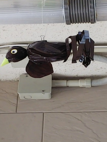 古い網戸の網のハンモックでフン防止&ヒナ落下防止にしてましたが、風にゆらりゆらり~