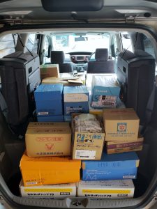 社用車2台に積み込み、リサイクル施設へ搬入。